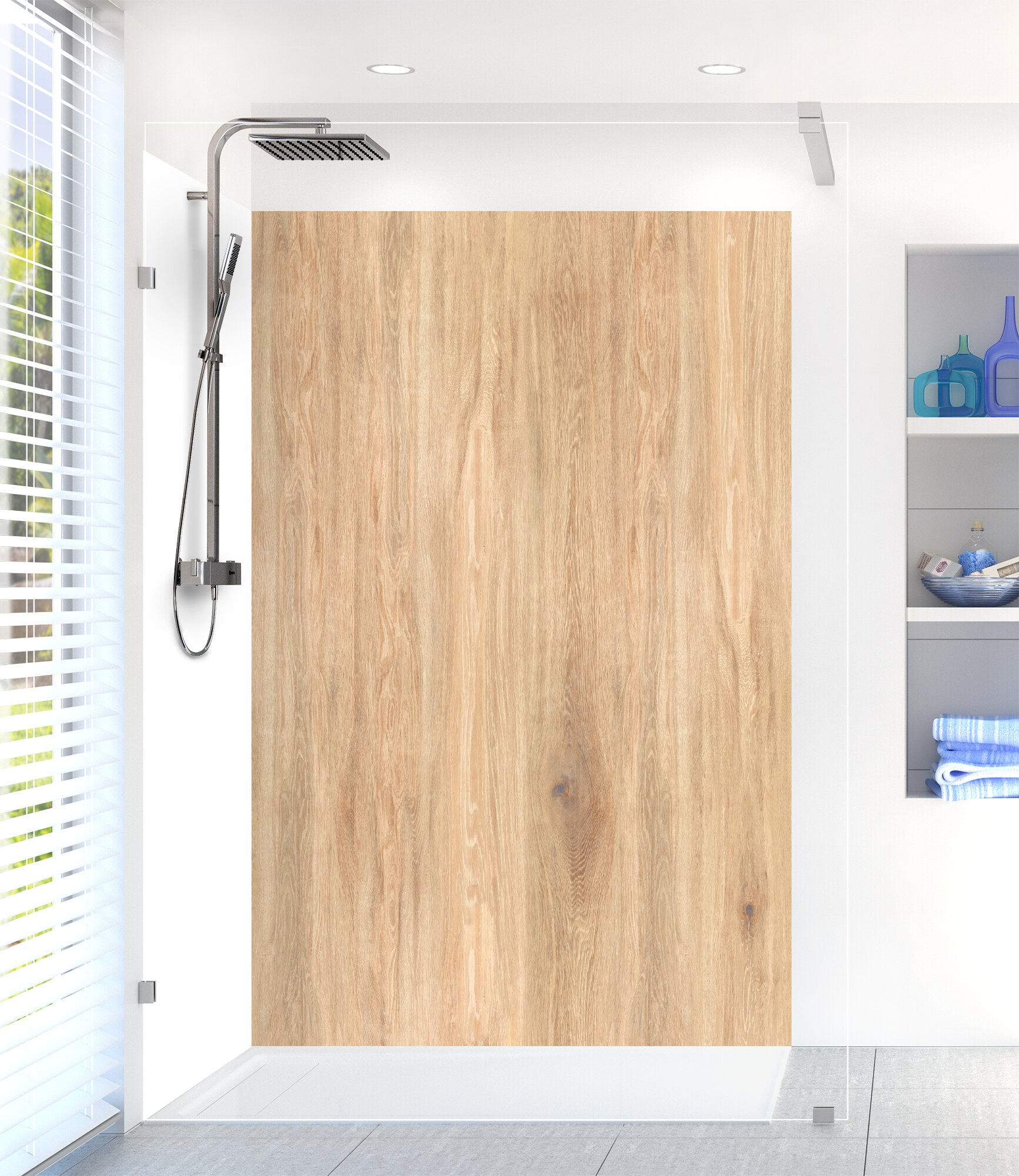 Un effet trompe l'œil des plus réalistes pour ce revêtement Chêne clair proposé en panneau mural de douche, résistant à l'eau et facile d'entretien. Disponible en 2 finitions : aluminium MAT ou polycarbonate BRILLANT, nos panneaux sont réalisés sur mesure et très faciles à poser y compris sur un revêtement existant.