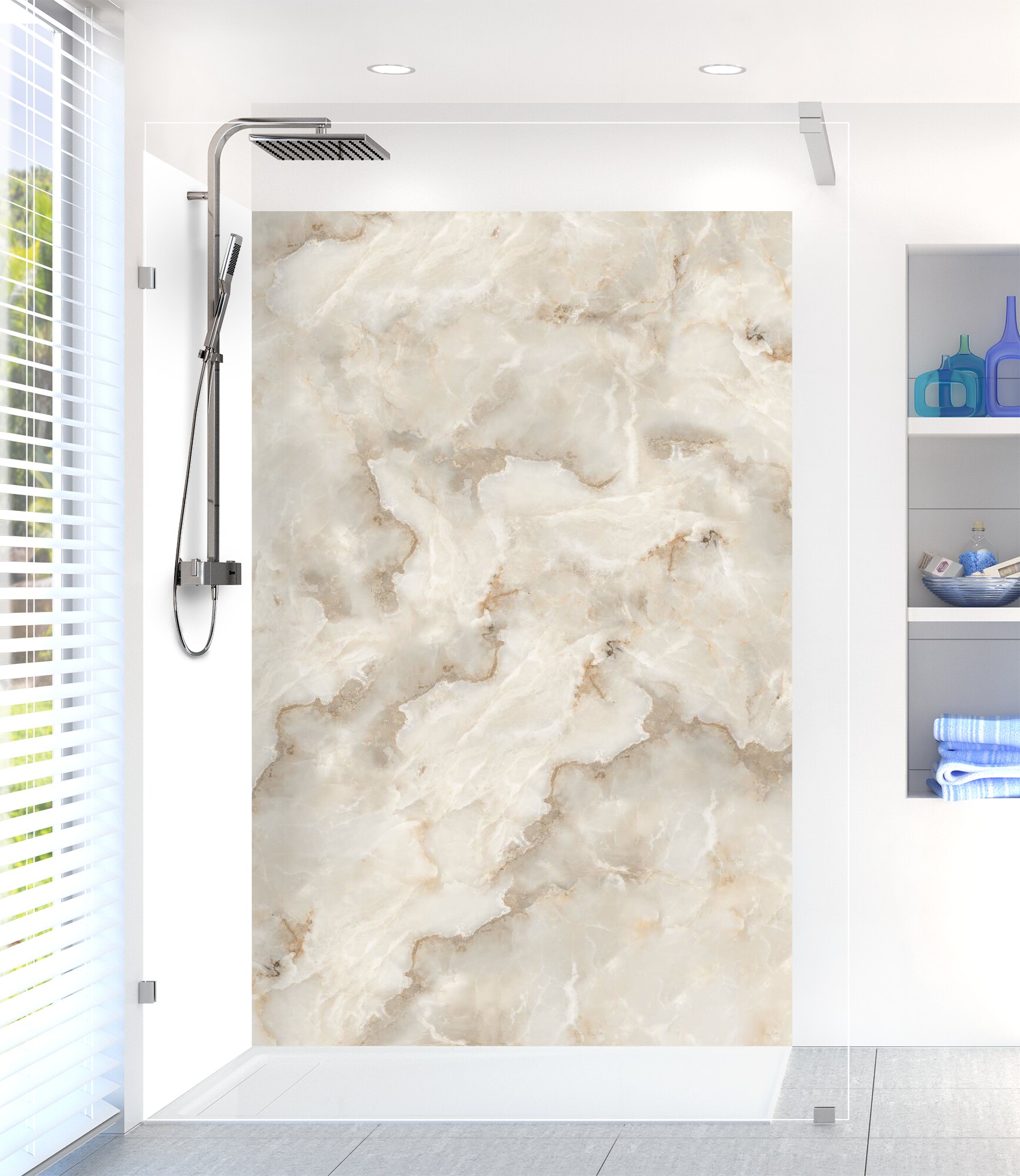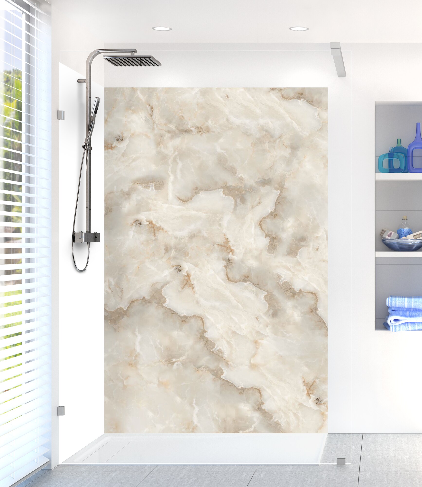 Un magnifique trompe l'œil d'un marbre naturel avec ce décor Marbre brun qui réchauffera les parois de votre douche. Des panneaux de bain à l'esthétique parfaite et bien plus facile à poser et entretenir que la pierre naturelle. Garanti 100% sur mesure.