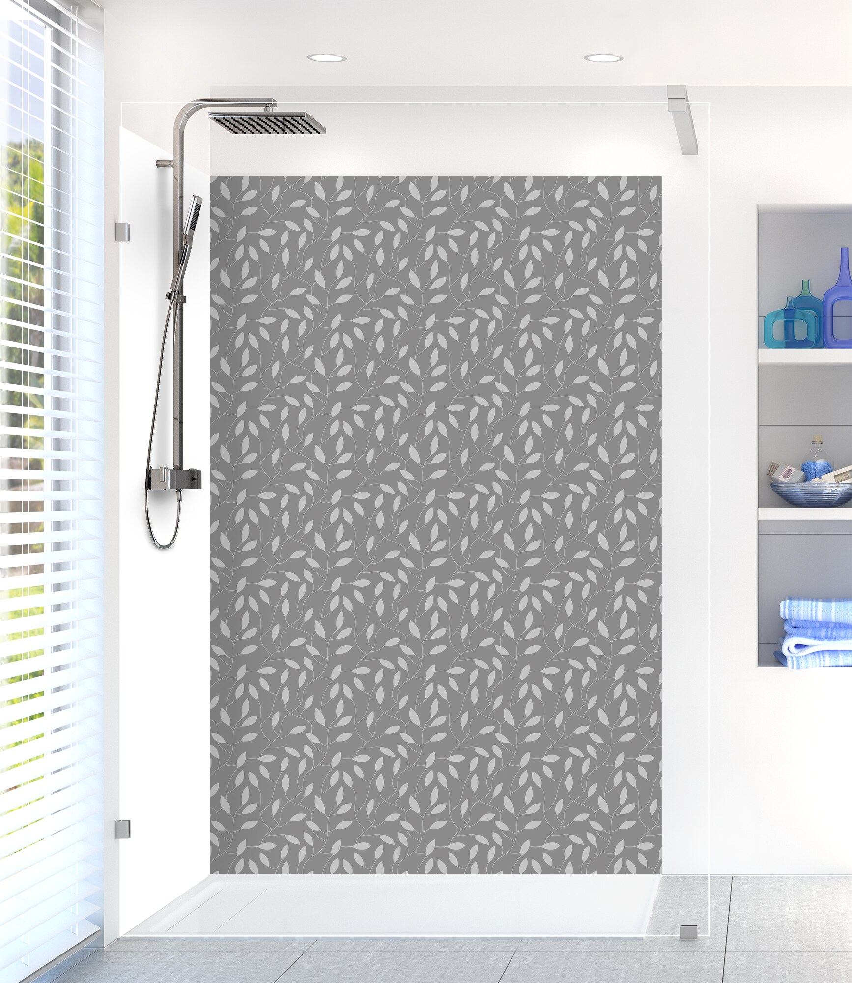 Panneau de douche Rideau de feuilles  couleur Gris perle