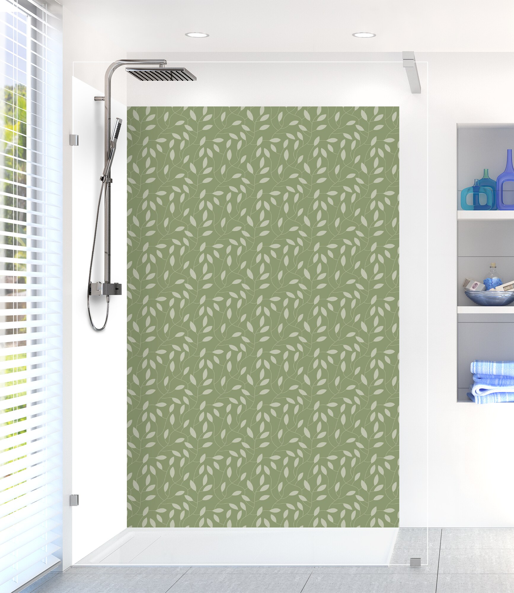 Panneau fond de douche  Rideau de feuilles  Vert avocat