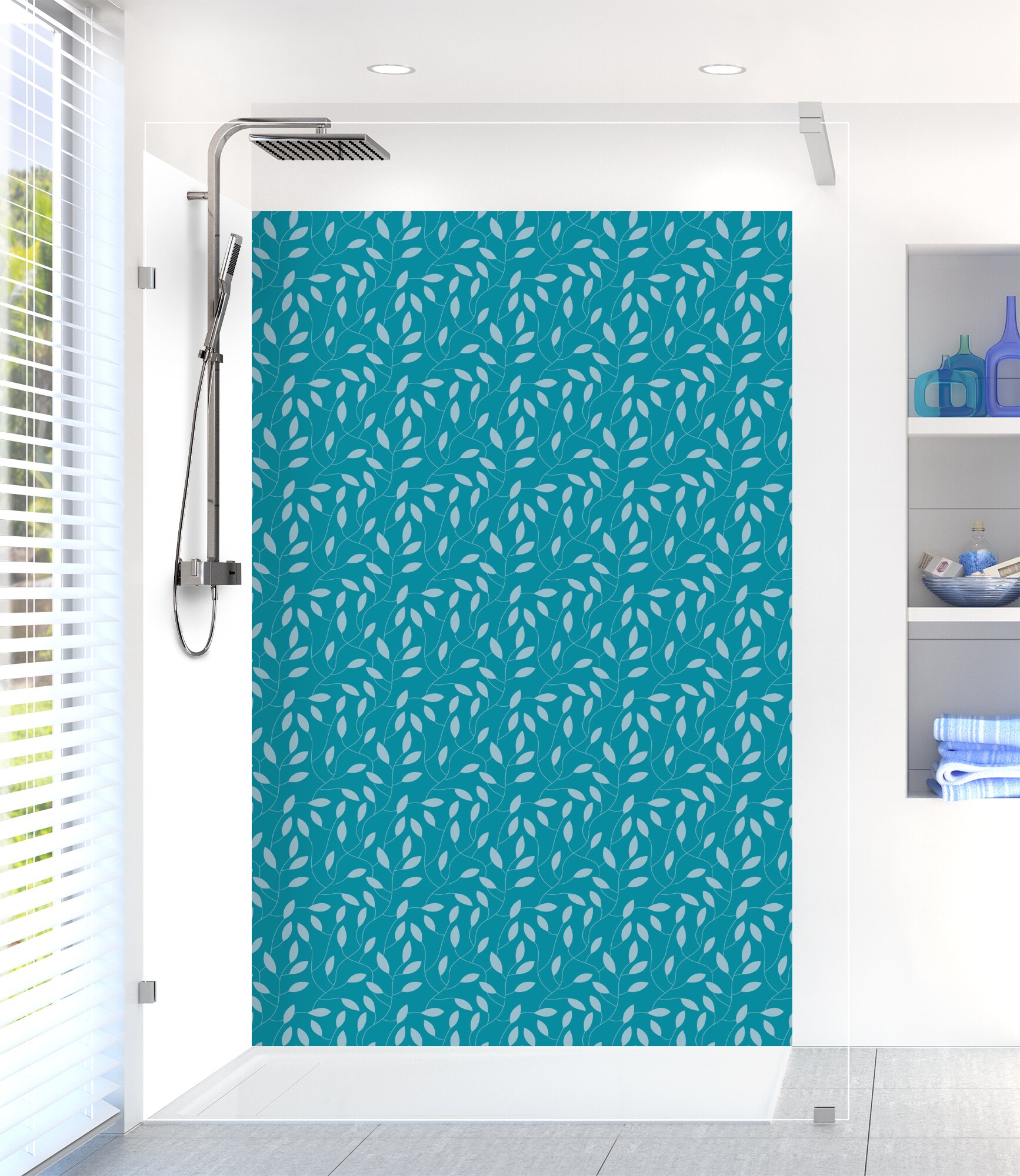 Panneau de douche Rideau de feuilles  couleur Bleu paon