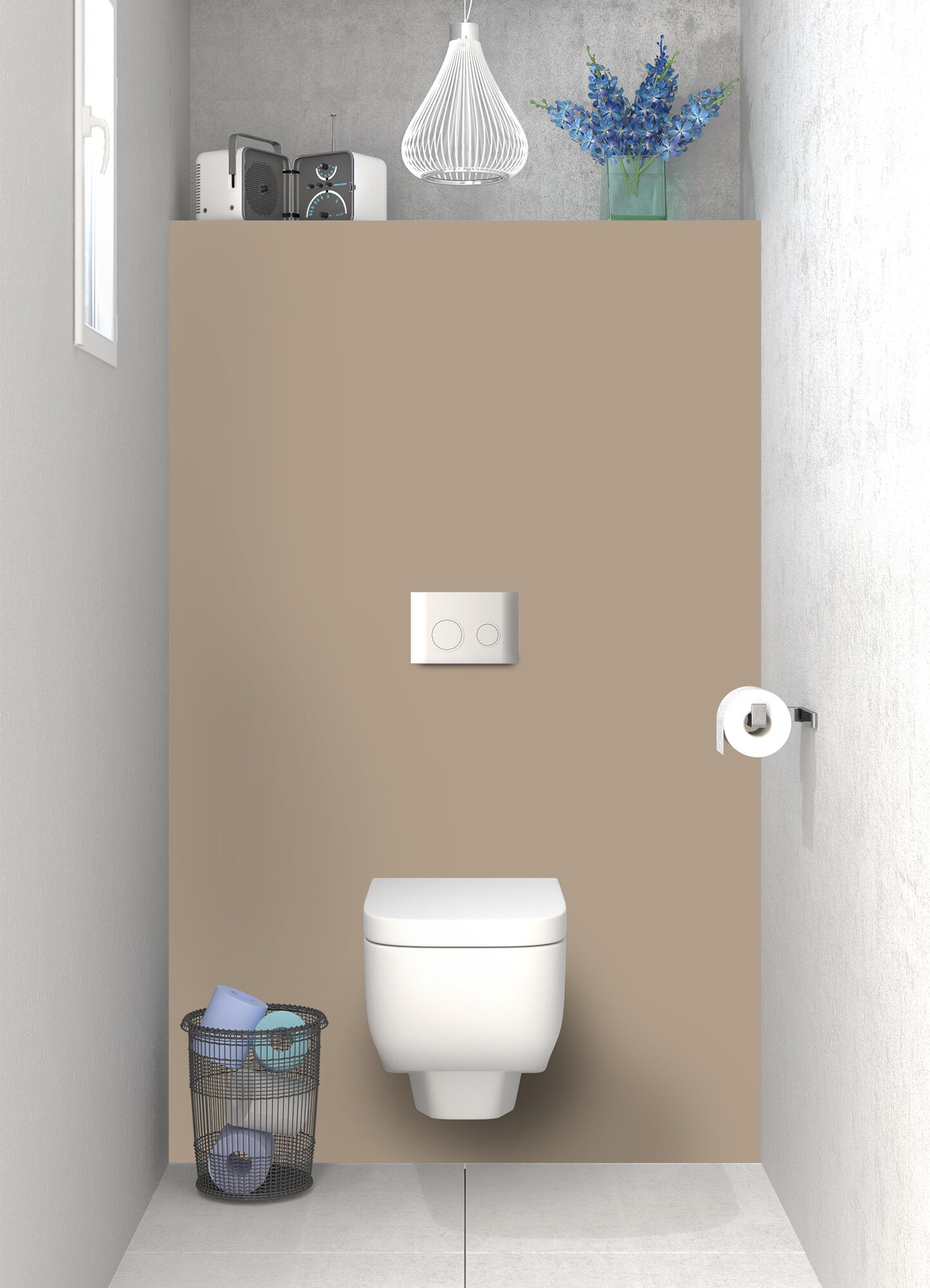 Ce panneau de toilettes brillant ou mat couleur Mulot est dans les tons Taupe, une couleur assez soutenue mais universelle en déco. Ces panneaux sont proposés en total sur mesure et à coller sur tous supports. Facile en rénovation sur un ancien carrelage !