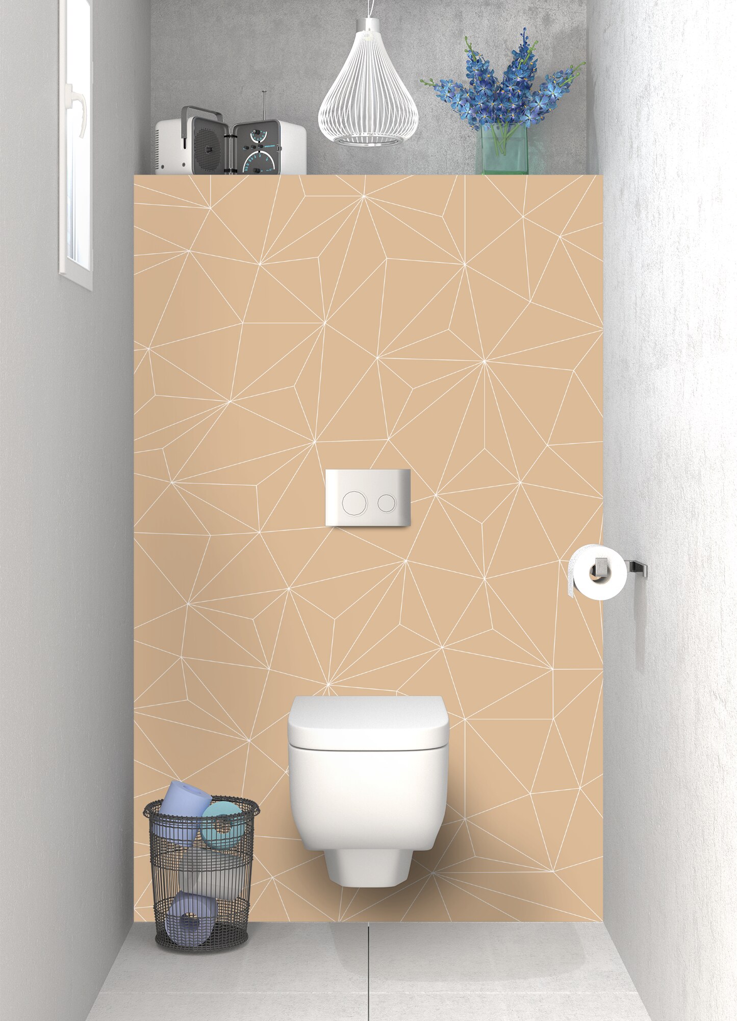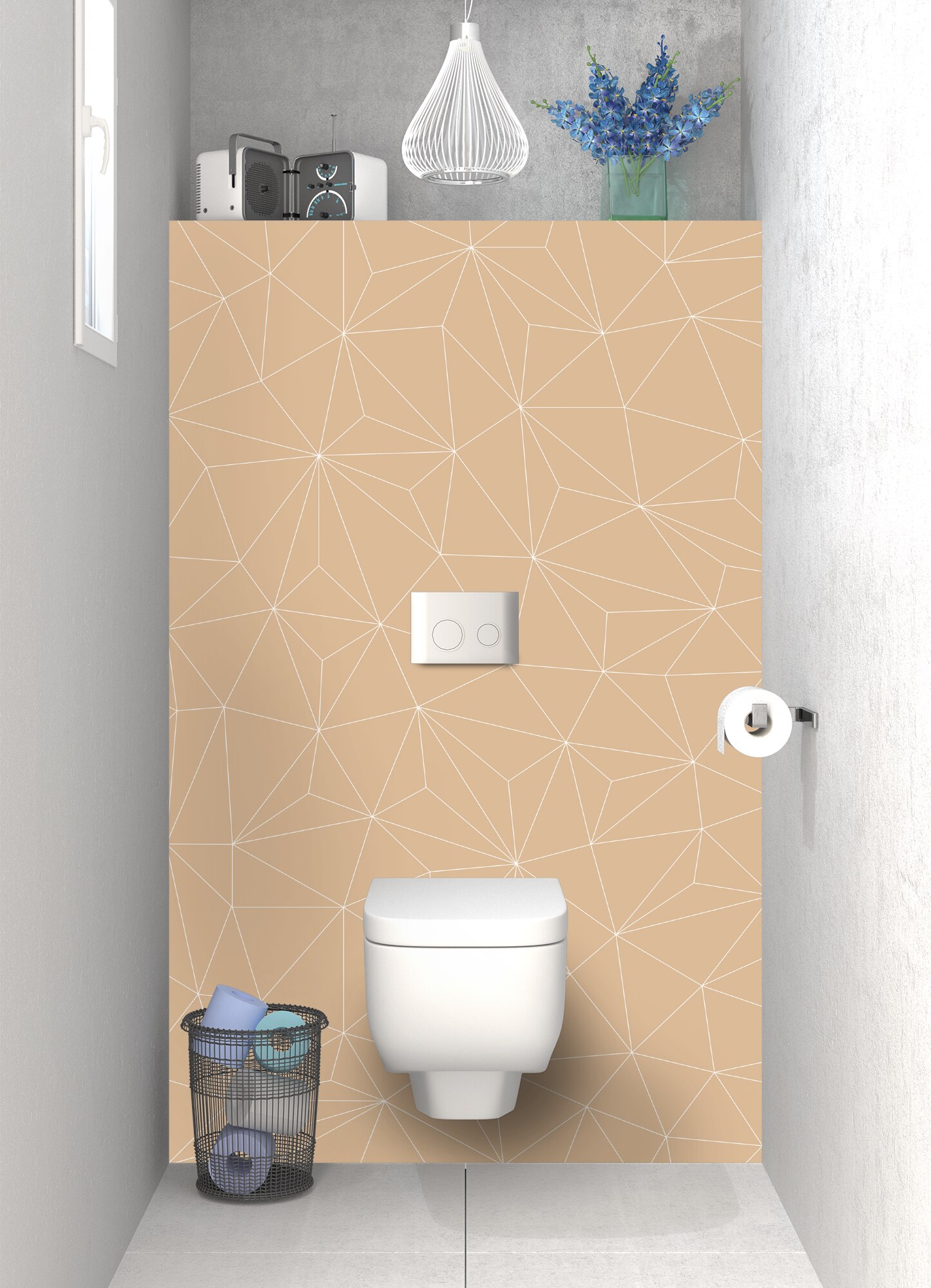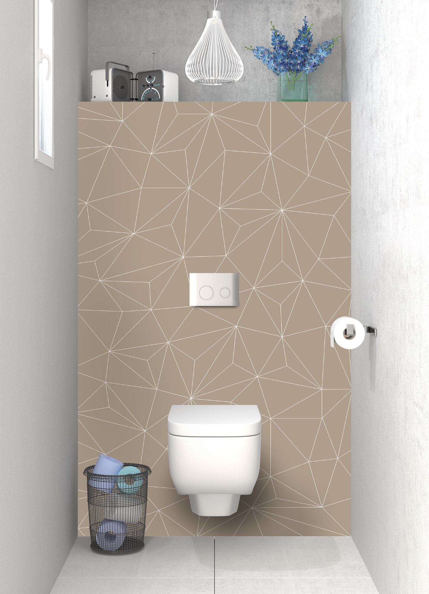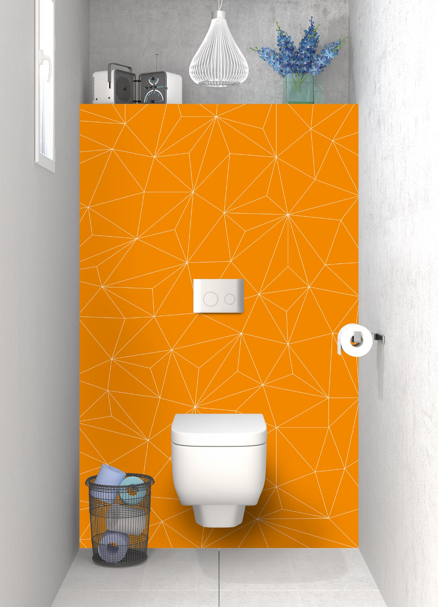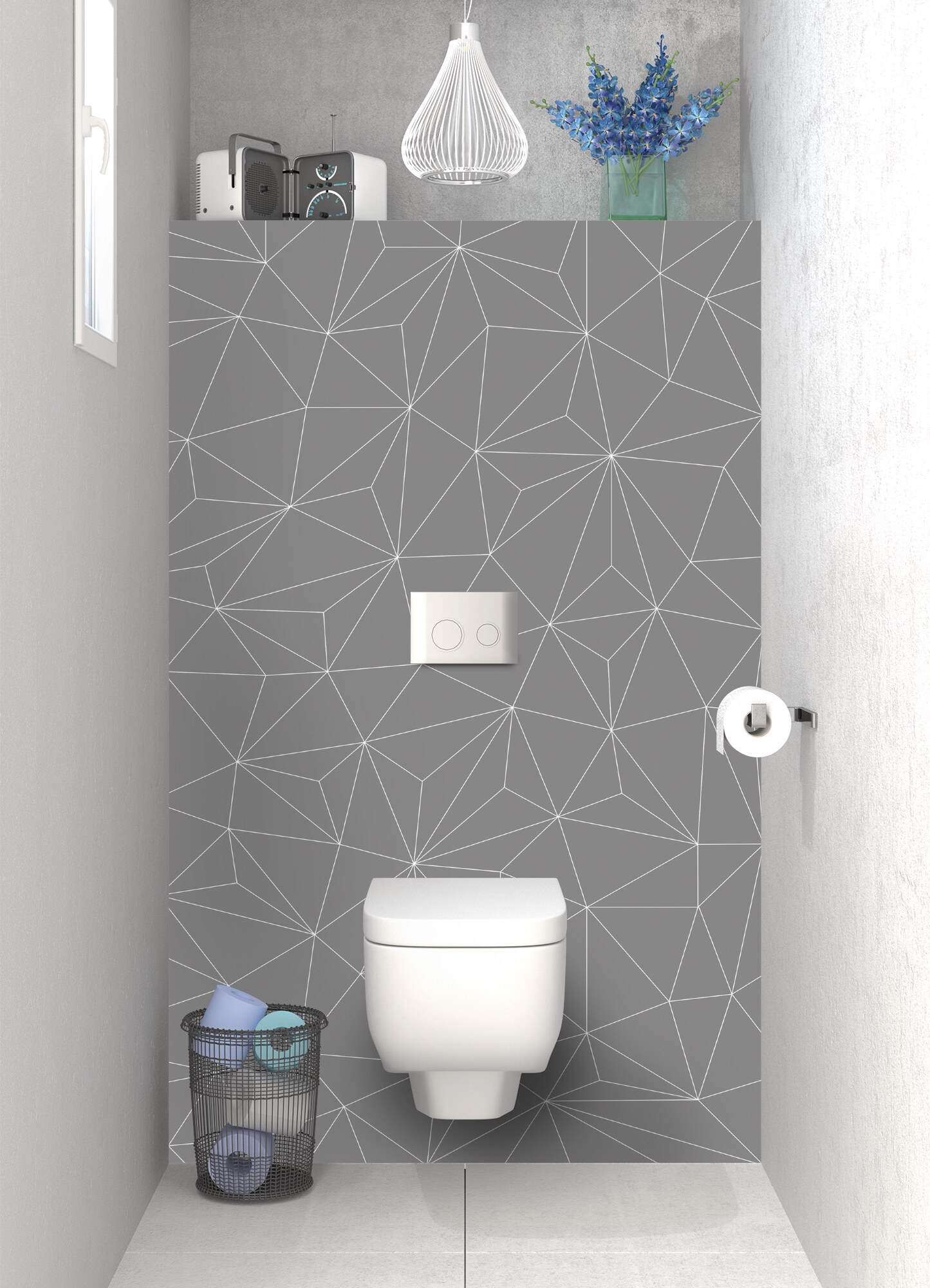 Donnez du cachet à votre espace bain avec ce décor à fort tempérament sur le mur arrière de vos toilettes. Un design moderne et graphique disponible en brillant sur polycarbonate et mat sur aluminium. Ce support se découpe, se pose et s'entretient facilement. Idéal en rénovation de salle de bain.