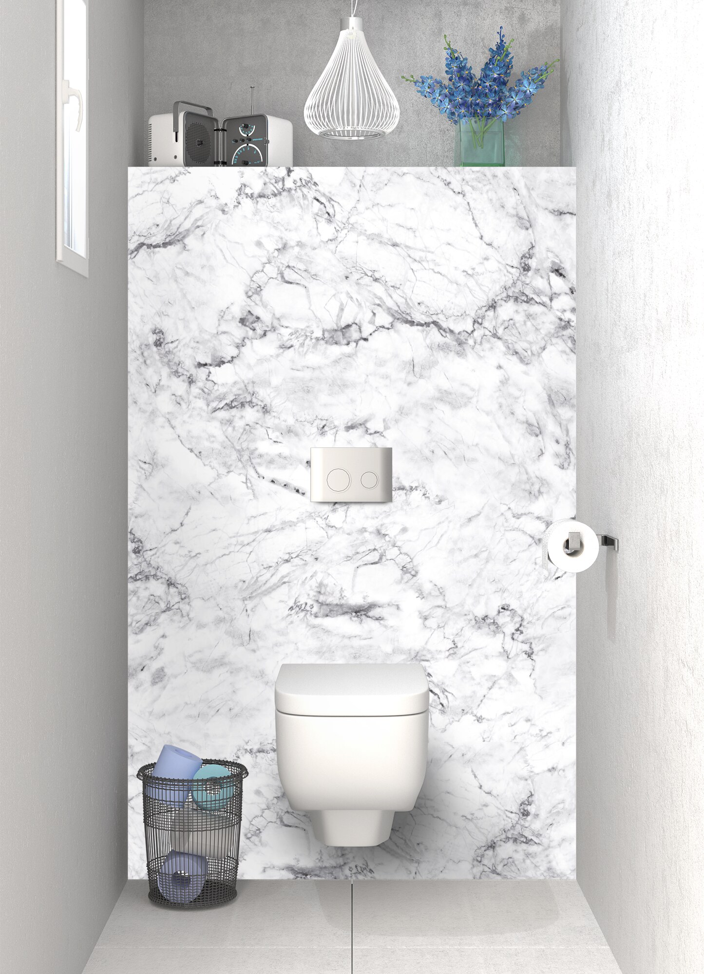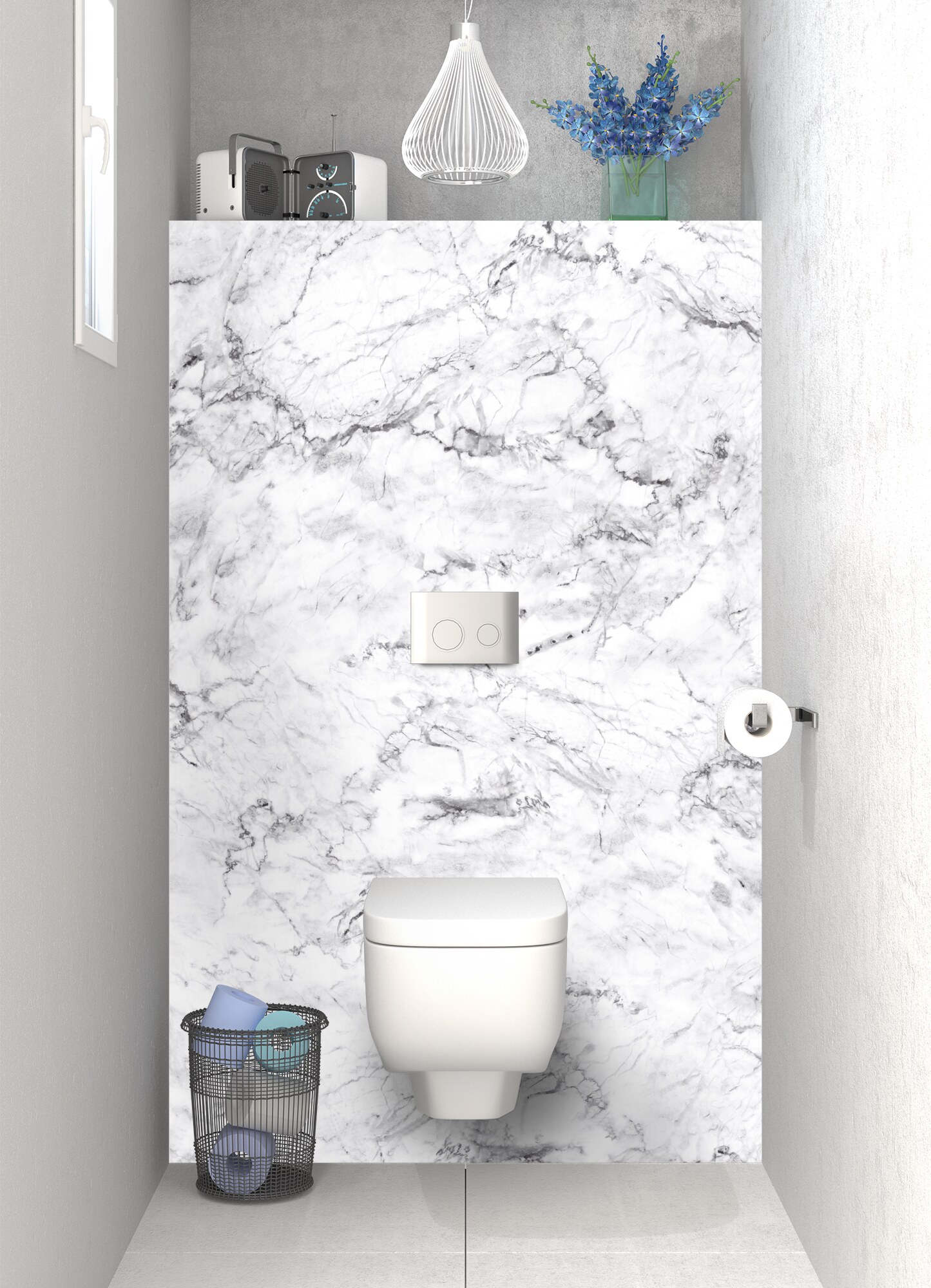 Donnez une touche sophistiquée à vos toilettes avec ce panneau d'imitation marbre facile à installer. Il est parfait pour recouvrir un ancien revêtement et est disponible en deux supports découpables.