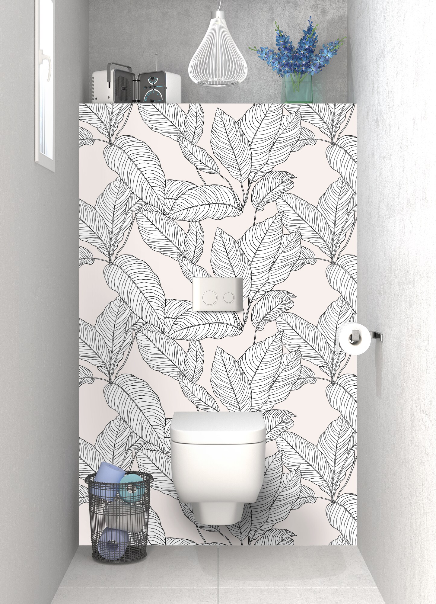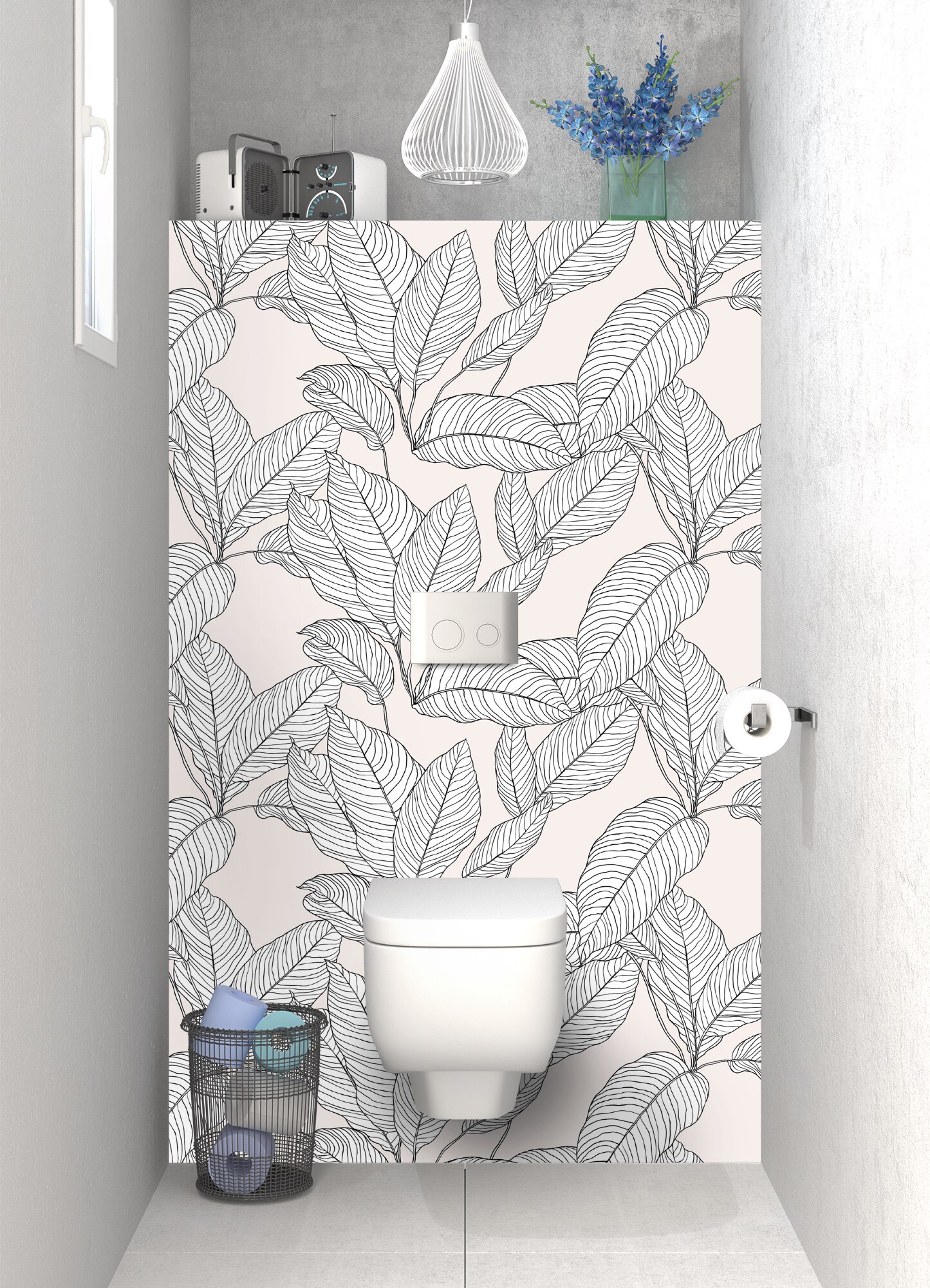 Envie d'un décor de feuillage végétal original, à la fois dense et léger sur le mur arrière de vos toilettes ? Optez pour ce décor contrasté composé de feuilles noires au trait sur fond pastel. Disponible en version mate ou brillante, chacun de ces supports révèlera un univers différent tantôt plus brut tantôt plus profond et lumineux. A vous de choisir votre support selon l'esprit déco souhaité dans votre salle de bain.