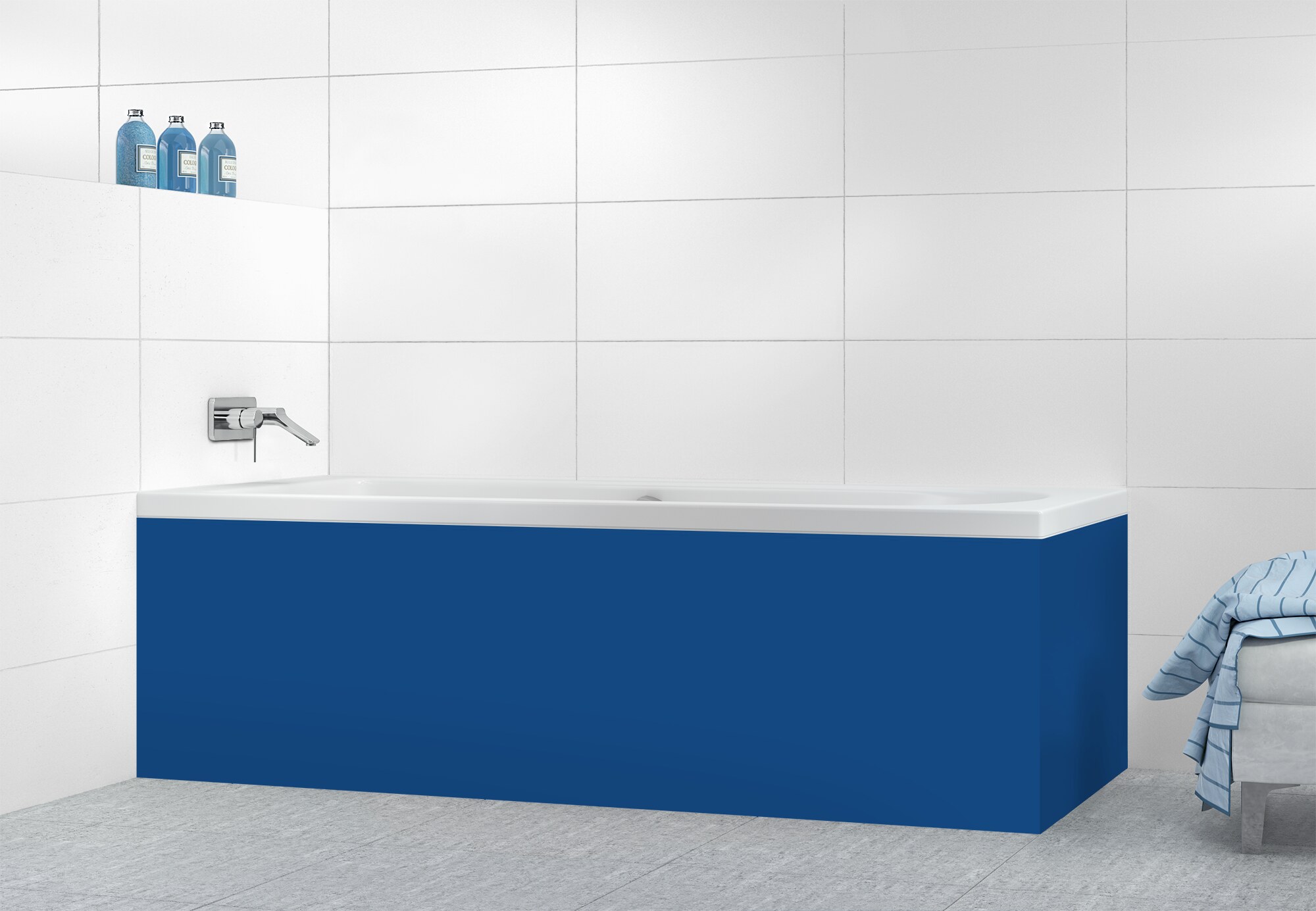 Panneau de tablier de bain bleu électrique, brillant sur polycarbonate ou effet mat sur aluminium. Personnalisable et facile à coller. Parfait pour les fans de bleu roi.