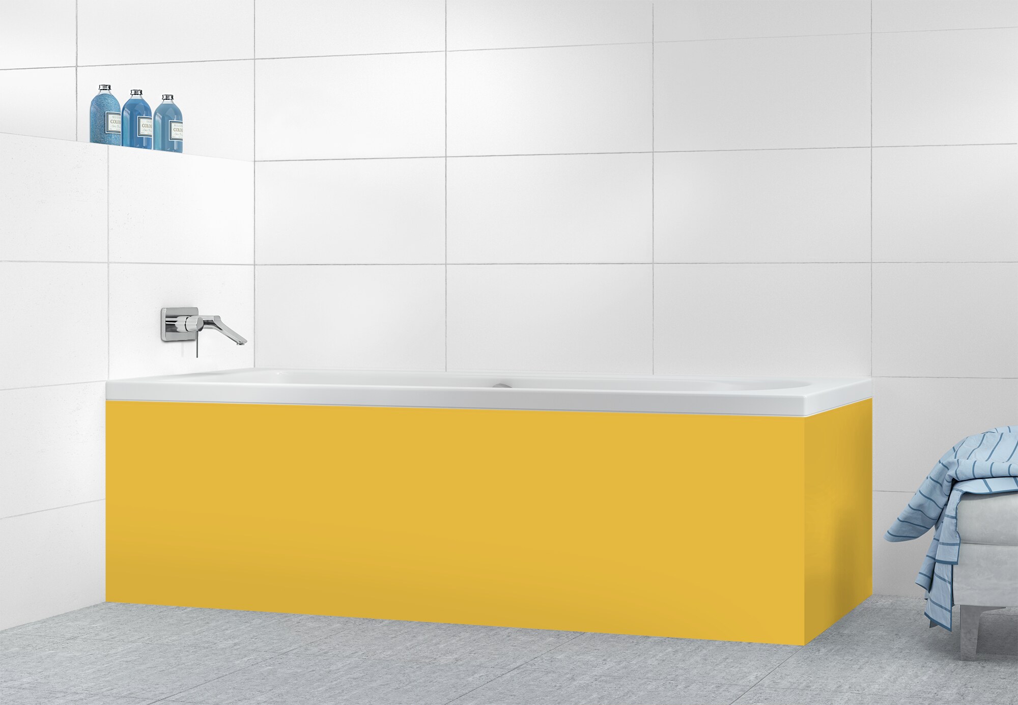 Ce tablier de bain couleur Curcuma est intemporel et offre un rendu unique en finition mat ou brillant.