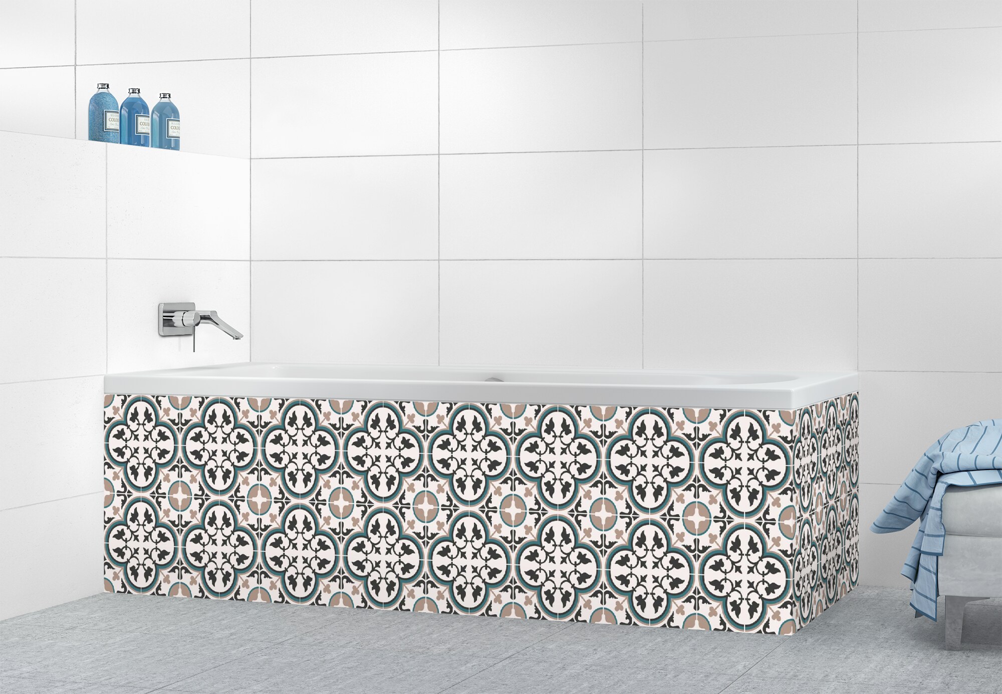 Donnez une touche de finesse à votre espace de bain avec notre tablier de bain. Disponible en plusieurs versions, il est facile à découper et à coller pour un rendu personnalisé. Idéal pour recouvrir un ancien revêtement.