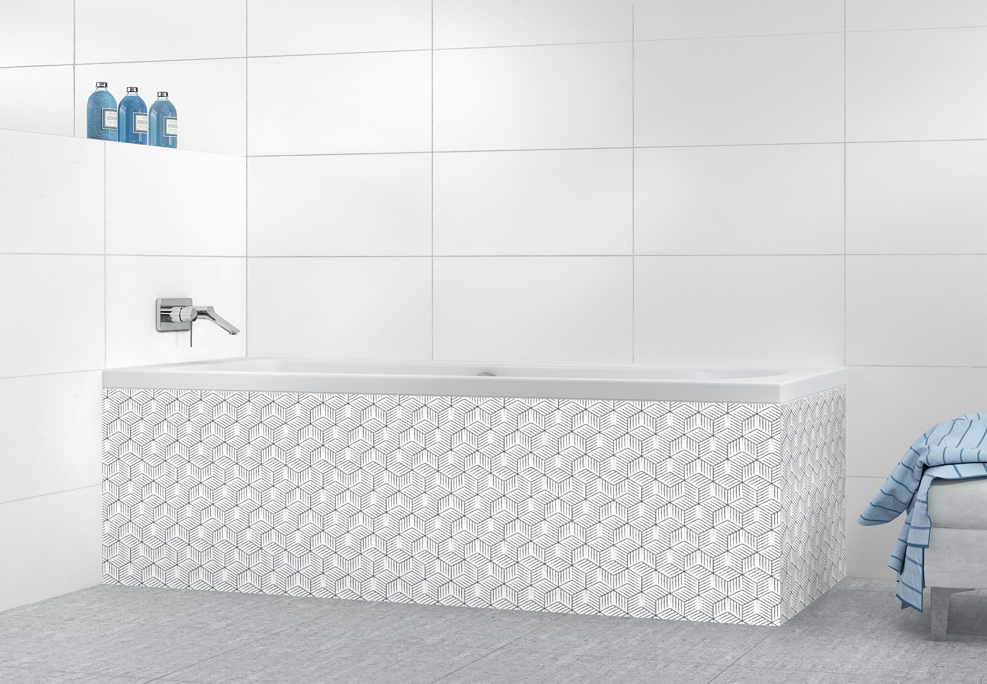 Panneau tablier de bain Cubes rayés  couleur Gris pierre