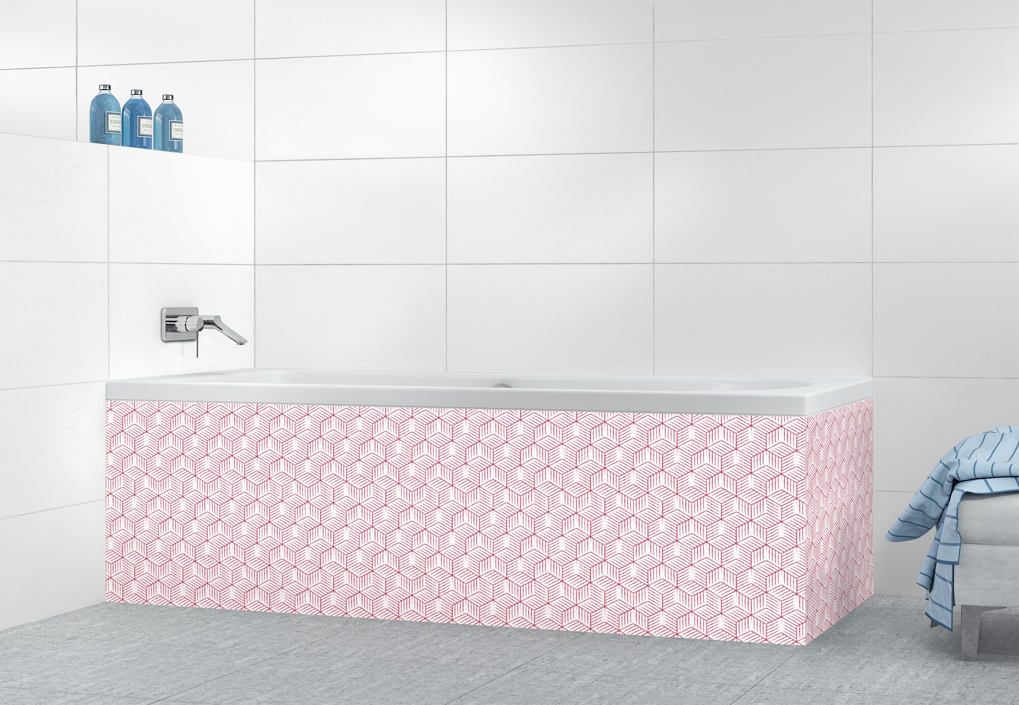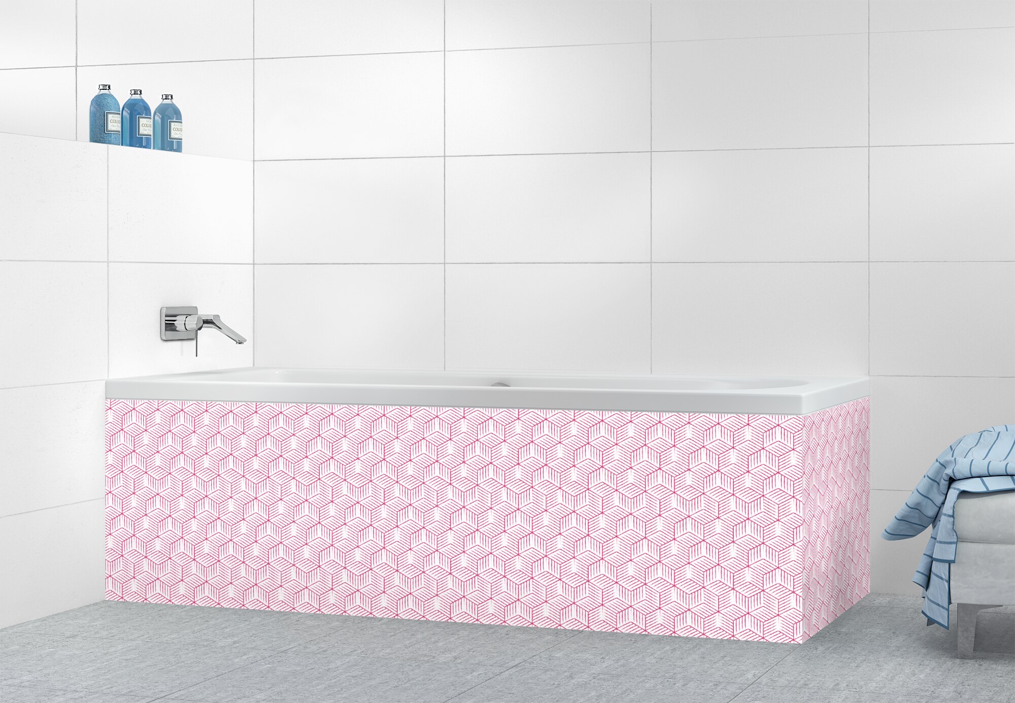 Panneau tablier de bain Cubes rayés  couleur Saphir rose