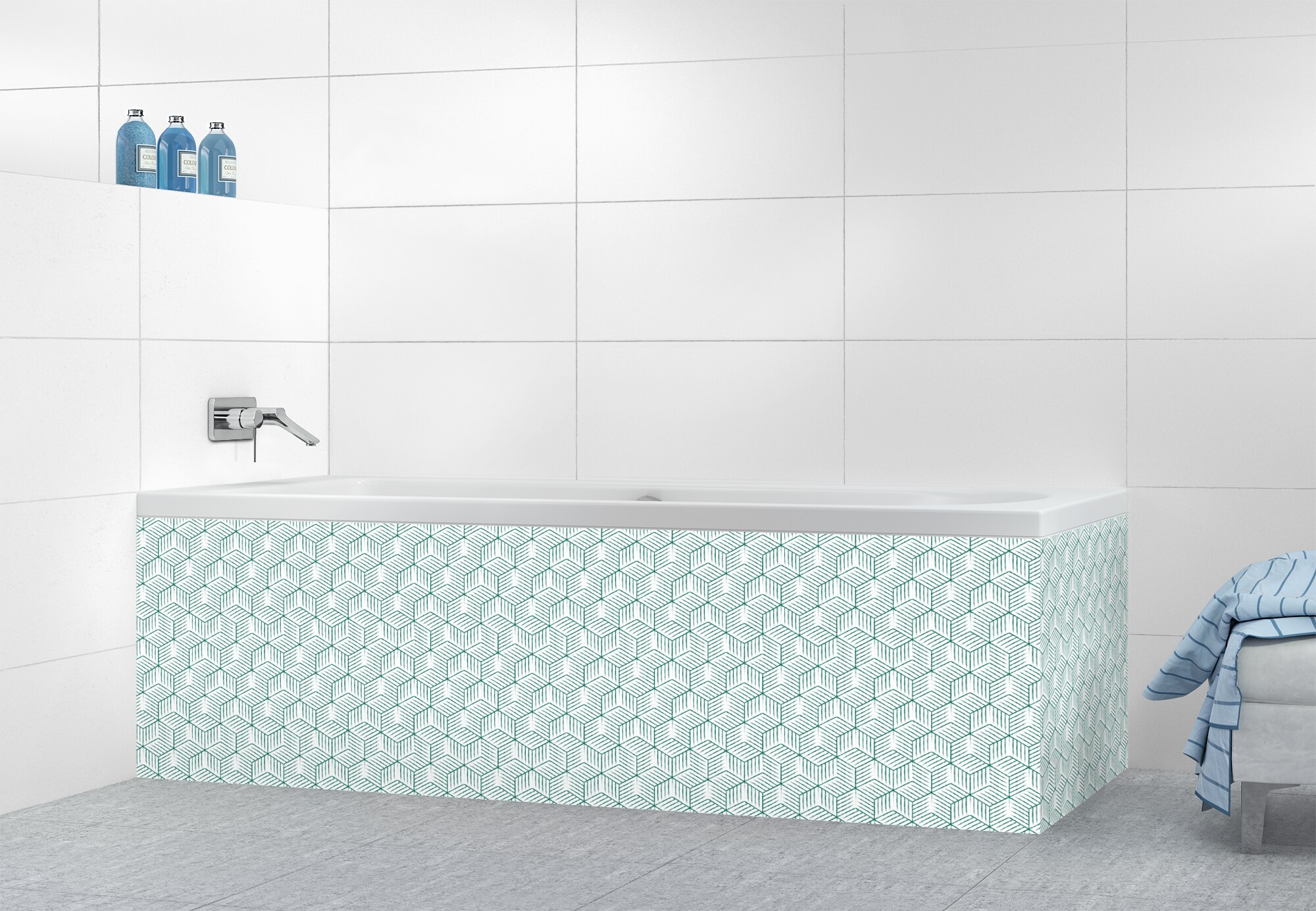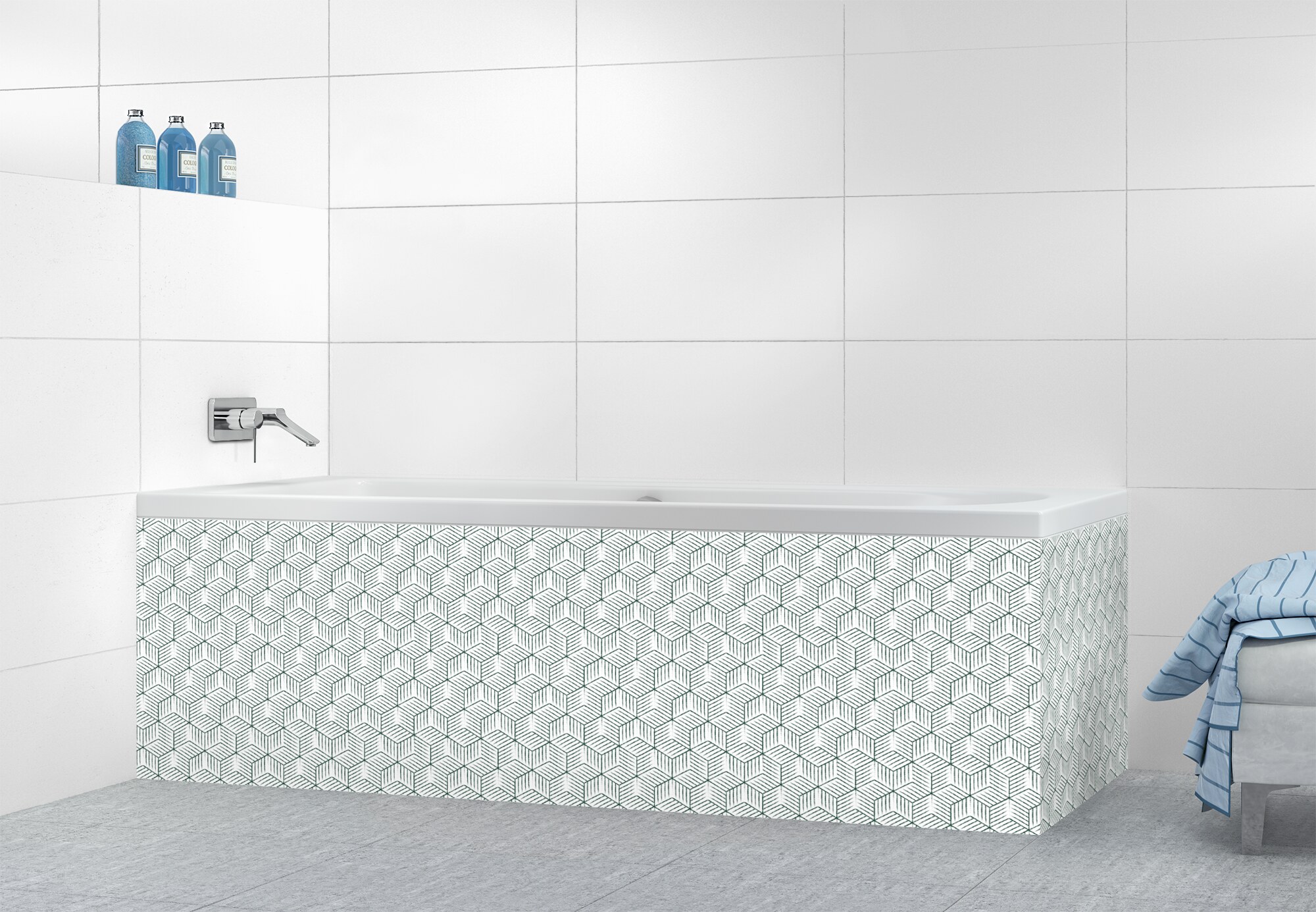Panneau tablier de bain Cubes rayés  couleur Vert jade