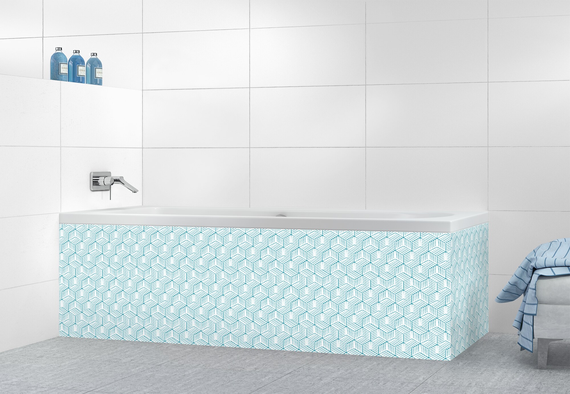Panneau tablier de bain Cubes rayés  couleur Bleu électrique