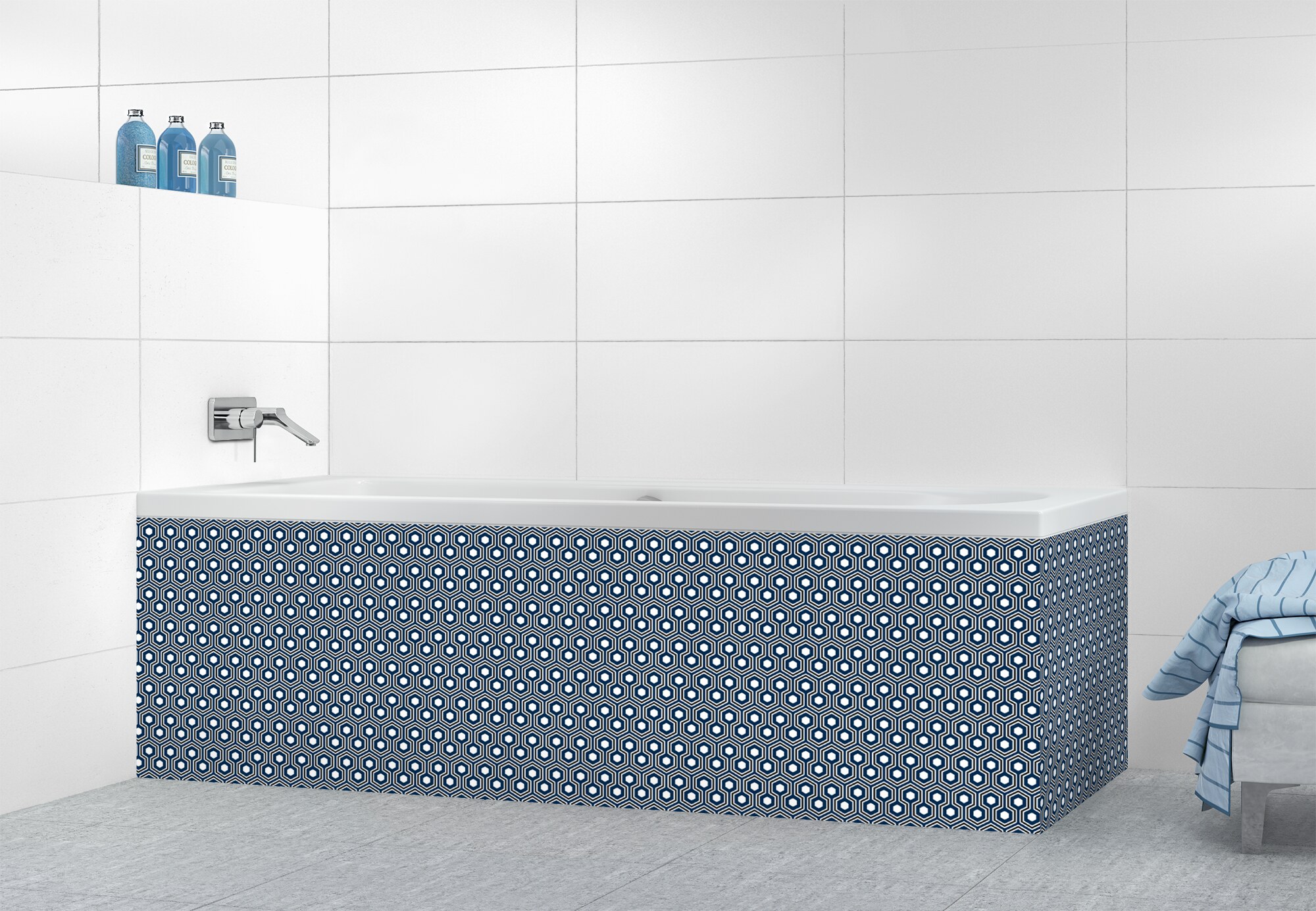 Panneau tablier de bain Hexagones  couleur Bleu nuit