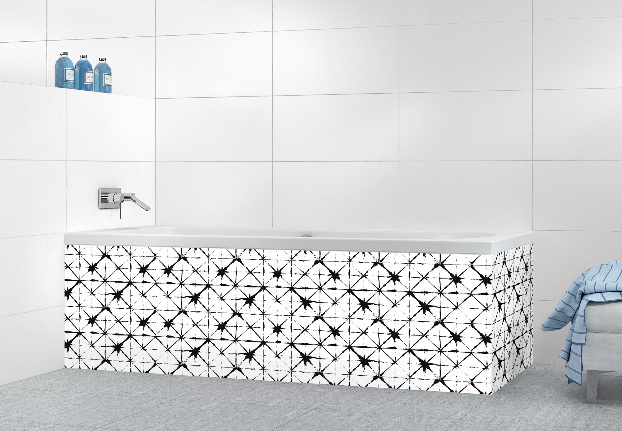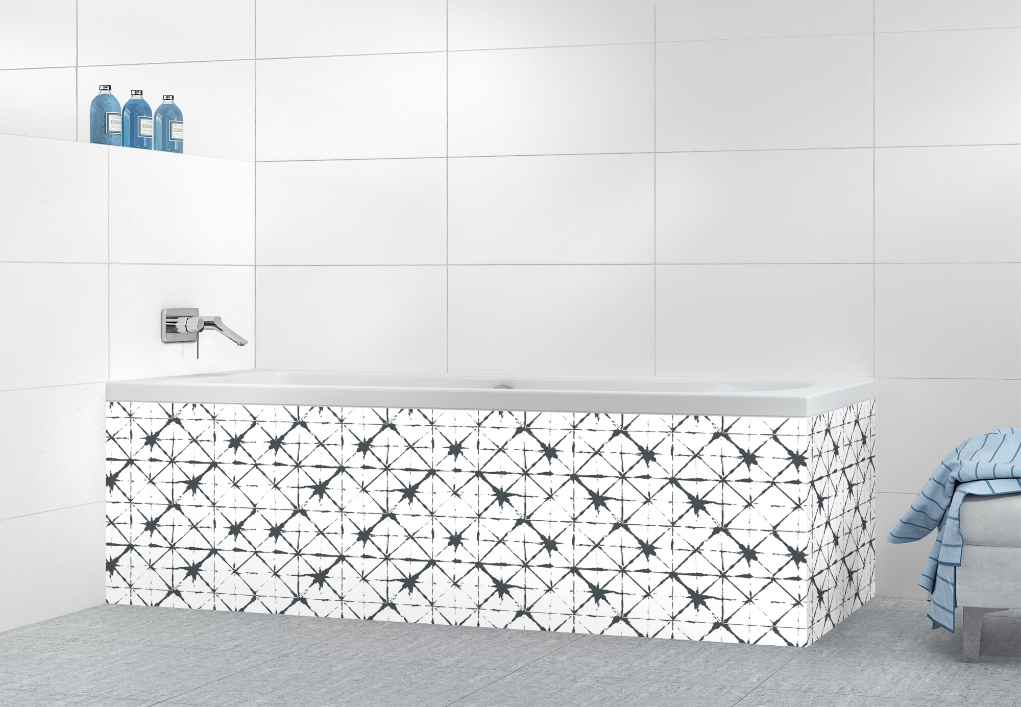 Donnez du style à votre tablier de bain avec notre panneau aux motifs berbères facile à découper, coller et entretenir grâce à nos supports en polycarbonate et en aluminium. Offrez-vous un tablier de bain unique !